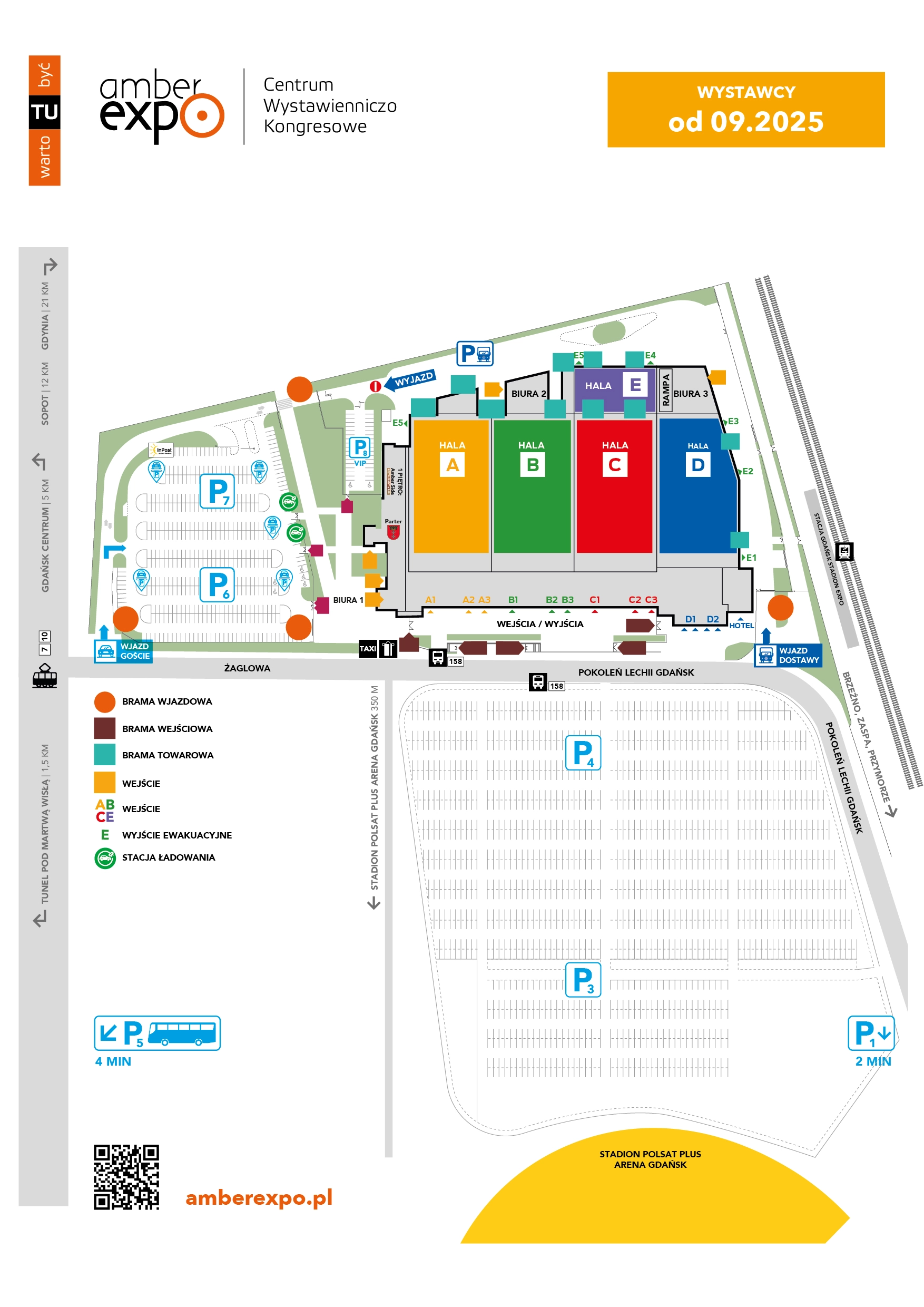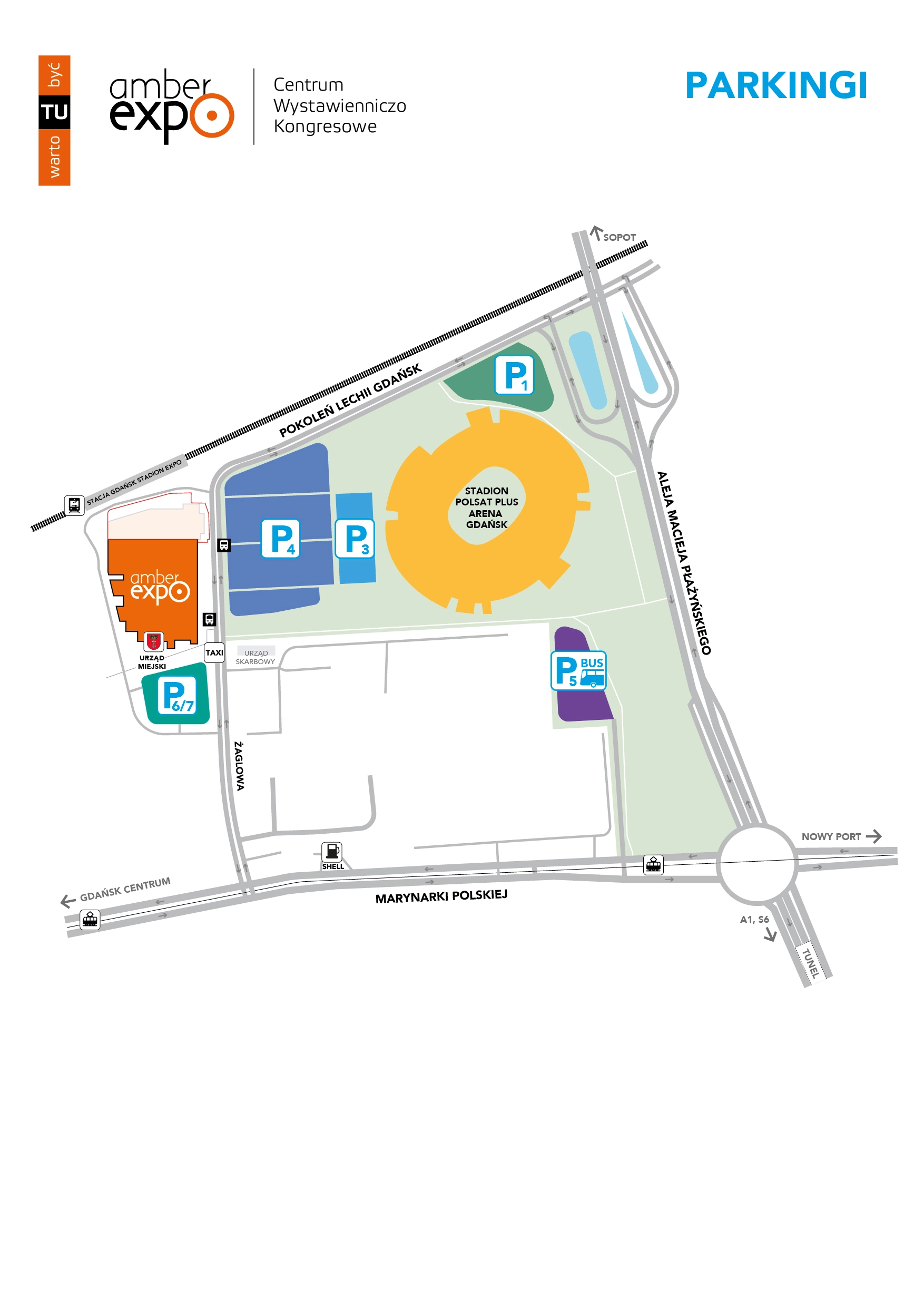 Sehr geehrte Aussteller, wir haben Parkplätze für Aussteller und VIP-Gäste auf dem Parkplatz P4 eingerichtet, der sich vor der Polsat Plus Arena gegenüber dem Haupteingang des AMBEREXPO-Komplexes befindet. Messe- und Konferenzteilnehmer können auch auf den Parkplätzen P6 und P7 der AMBEREXPO parken.